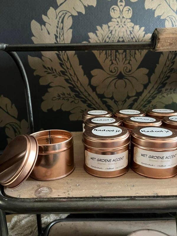 Deze kaarsen maken we op bestelling in de kleur en geur van uw keuze. Kan ook gepersonaliseerd worden.