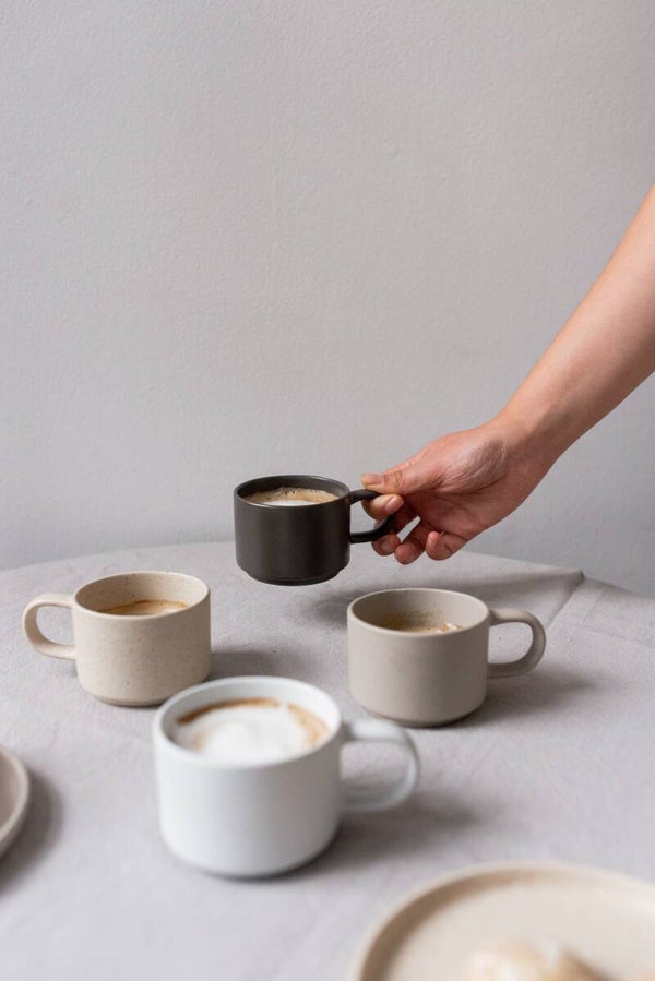 De mokken zijn stapelbaar, dus kunnen gemakkelijk een mooi plekje krijgen in de keuken.