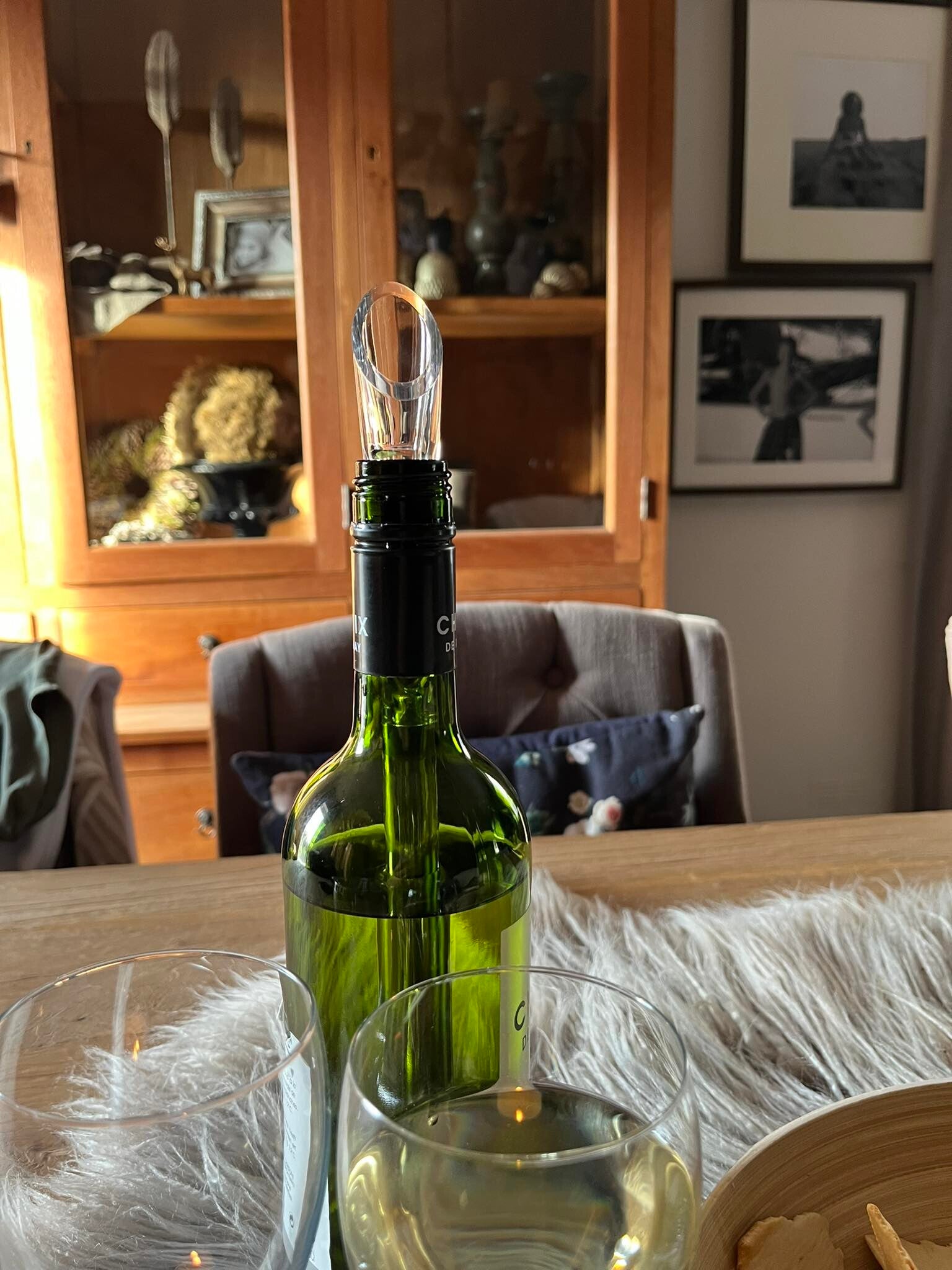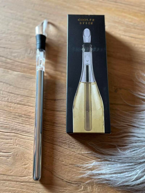 Vervolgens stop je de stick in bijvoorbeeld een wijnfles en de wijn blijft heerlijk op de juiste temperatuur.