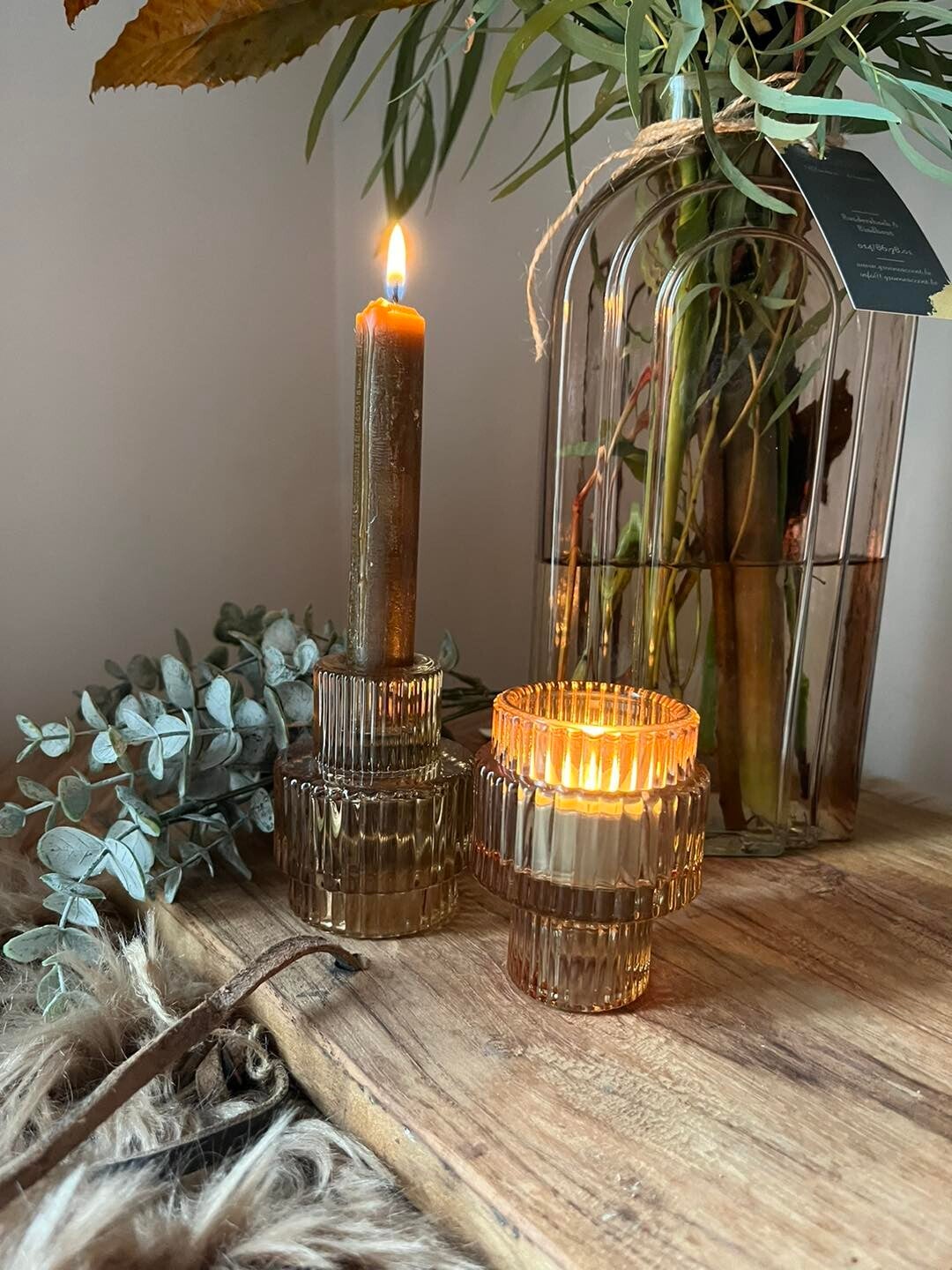 Leuke kandelaar. Gebruik hem langs 2 kanten of stapel ze op.