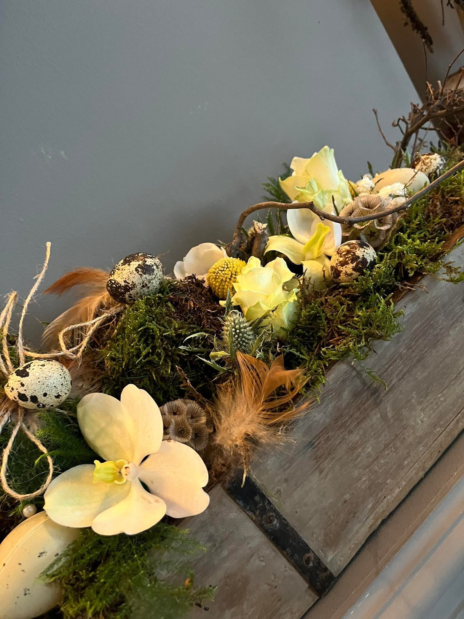 Hier gevuld met wit en paasdecoratie.