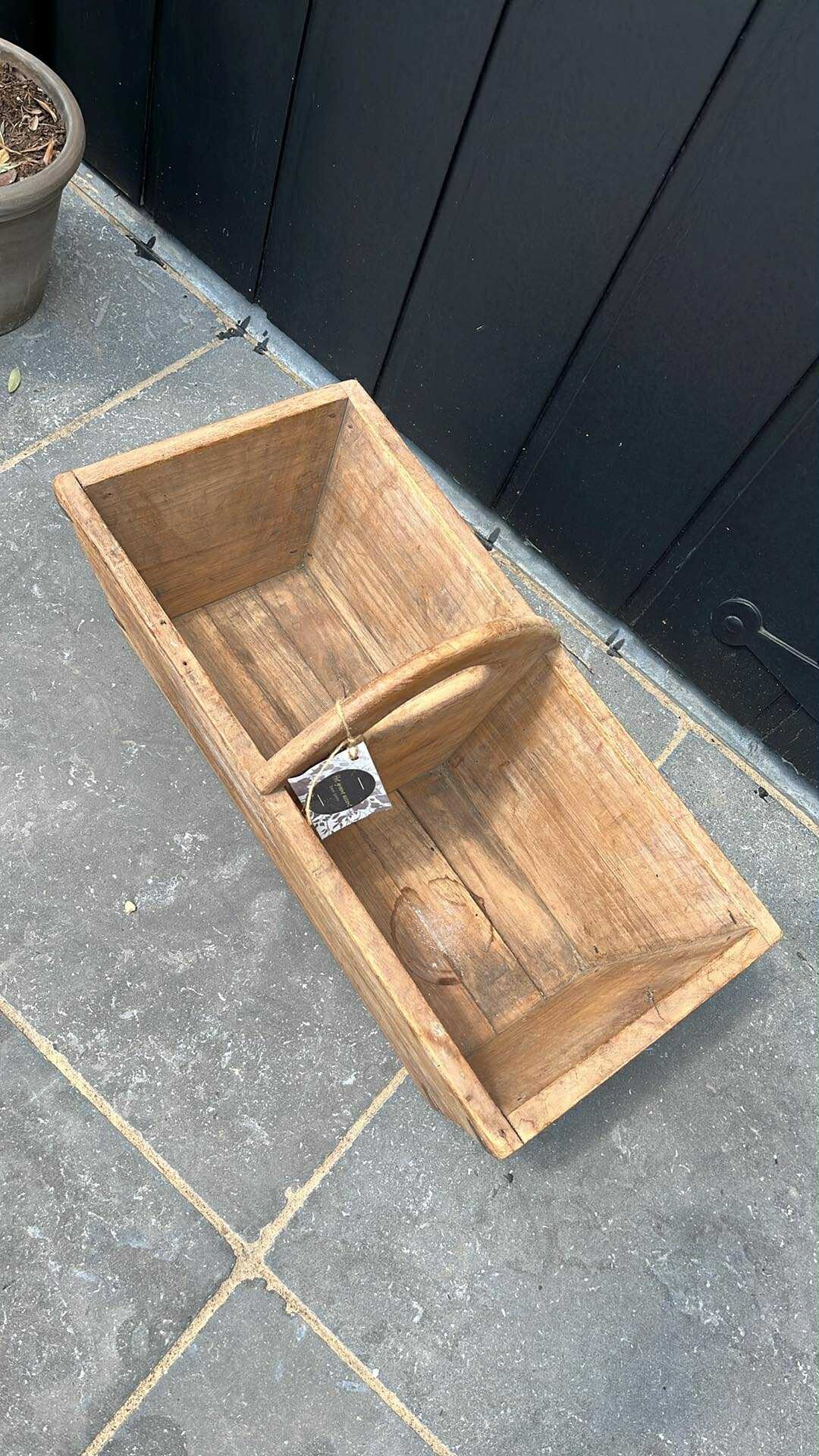 Houten bak met dubbele verdeling en handvat