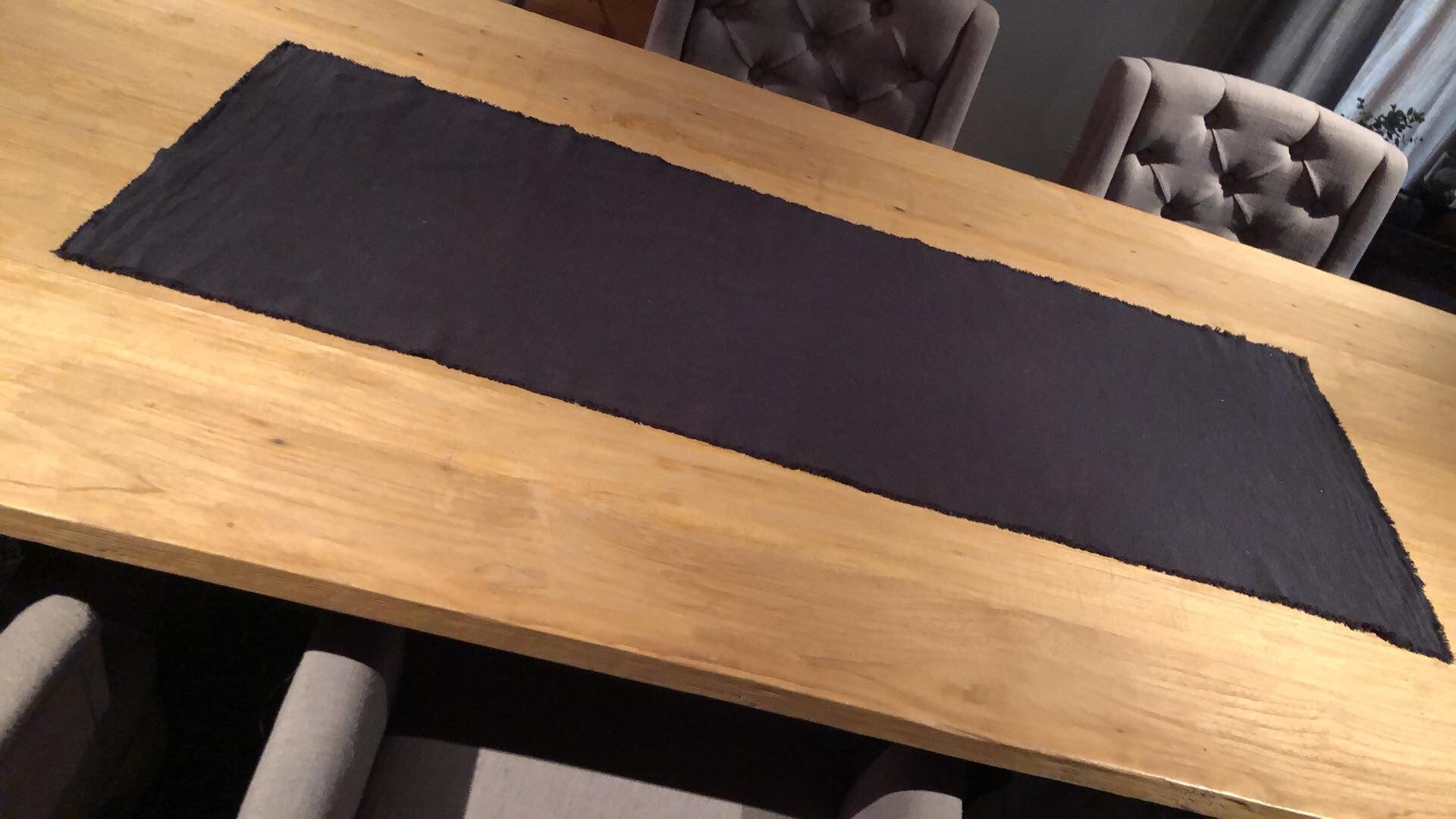 Linnen stone washed grijze tafelloper, omzoomd in de afmeting 45 cm x 145 cm