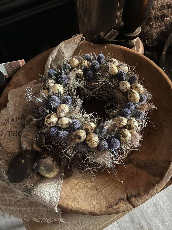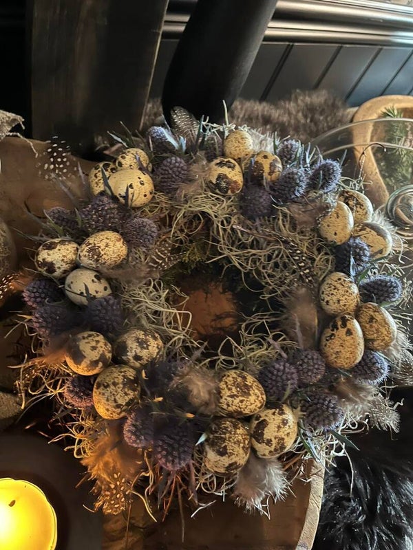 Deze kan ook gemaakt worden met witte distel en met een andere kleur kwarteleitjes.